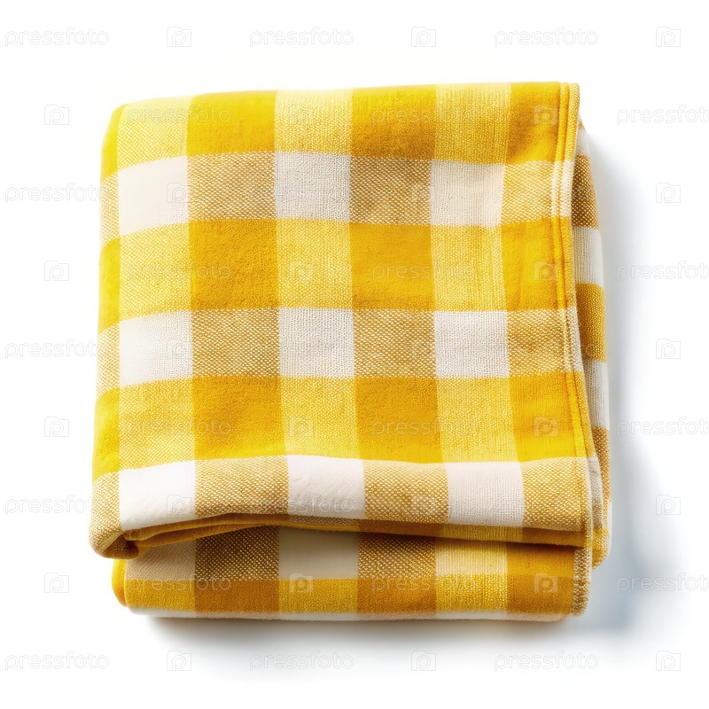 Желтое фланельное одеяло на белом фоне с квадратным узором