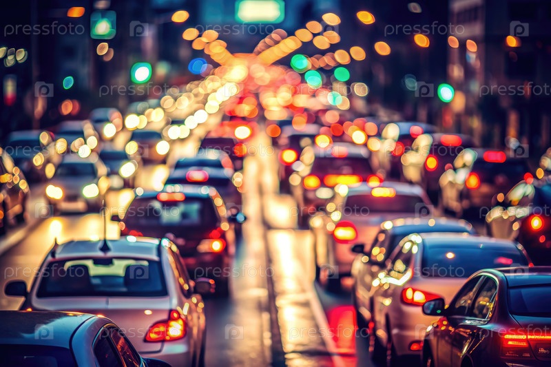 Close Up Vintage Tone Abstract Blur, изображающий вечернюю пробку в городской обстановке