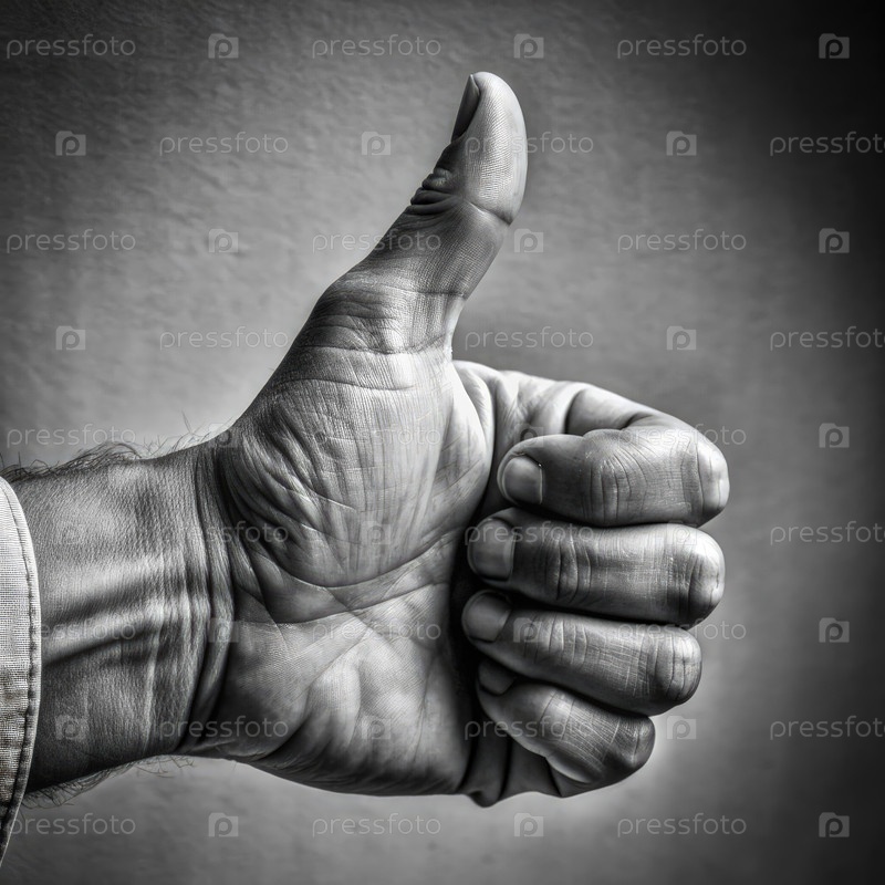 Рука, поднимающая большой палец в монохроматической обстановке