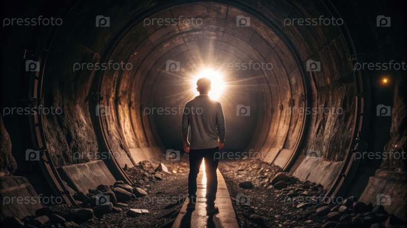 Человек обнаруживает свет в конце темного туннеля во время вечернего исследования