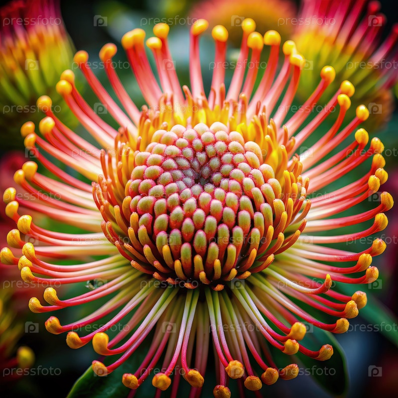 Близкий план яркого цветка с поразительными красно-желтыми деталями при естественном свете