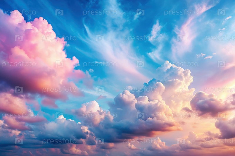 Пастельно-розовые и голубые облака, вращающиеся в спокойном небе на закате
