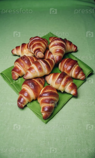 Свежевыпеченные казахские кроассанты на зеленой тарелке