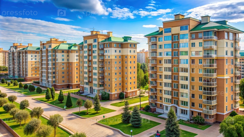 Современные квартиры в Узбекистане с озелененными садами и голубым небом