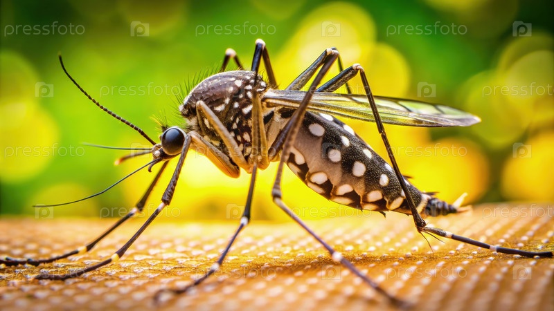 Близкий снимок комара, питающегося человеческой кожей в естественной обстановке во время теплого дня