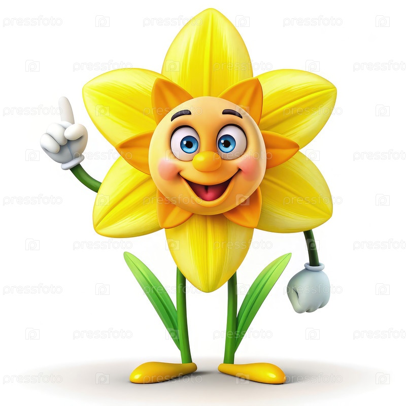 Веселый талисман нарцисса стоит на белом фоне с дружественной позой