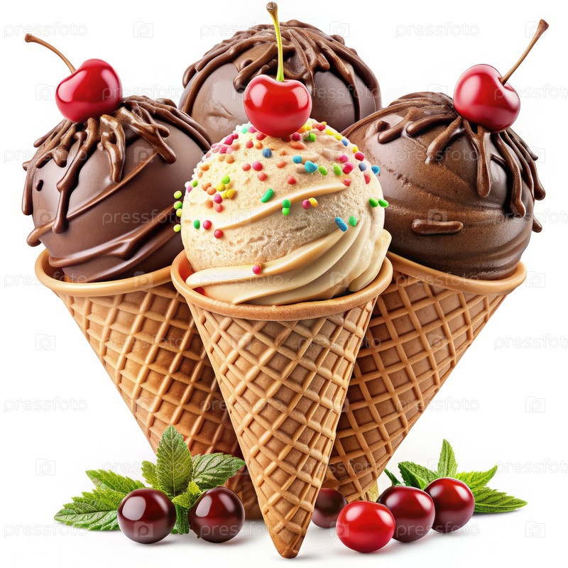 Классические мороженые шишки с ароматами шоколада и ванилы, покрытые вишней