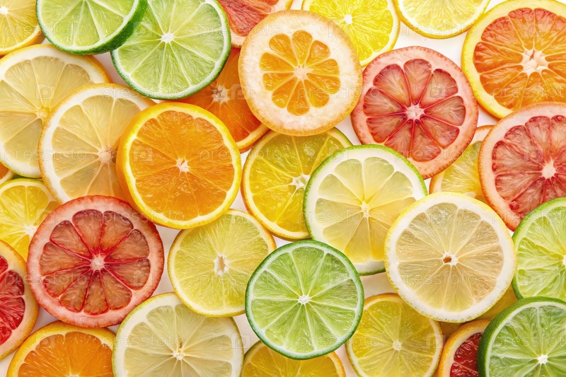 Вибрирующие круглые ломтики цитрусовых, расположенные на прозрачном фоне для кулинарного использования