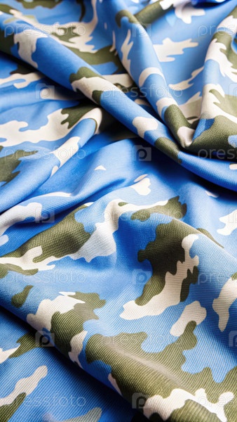 Текстурированная ткань с синим камуфляжным рисунком со зелеными и белыми акцентами