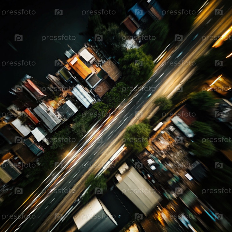 Вид с воздуха на Барангай Дугкал в Камалигане во время сумерек с оживленными дорогами