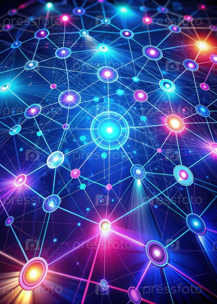 Футуристическая сетевая визуализация с яркими цветами и светящимися узлами