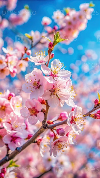 Весна приносит ярко цветящие цветы с нежными розовыми лепестками на светло-синем небе, отмечая красоту сезона