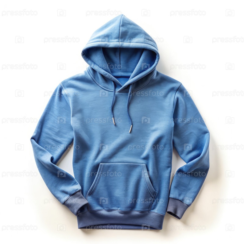 Мягкий голубой джинс с капюшоном, отображаемый на белом фоне, демонстрирует свой дизайн и уютные особенности, идеально подходит для повседневного ношения и слоирования в более холодные сезоны