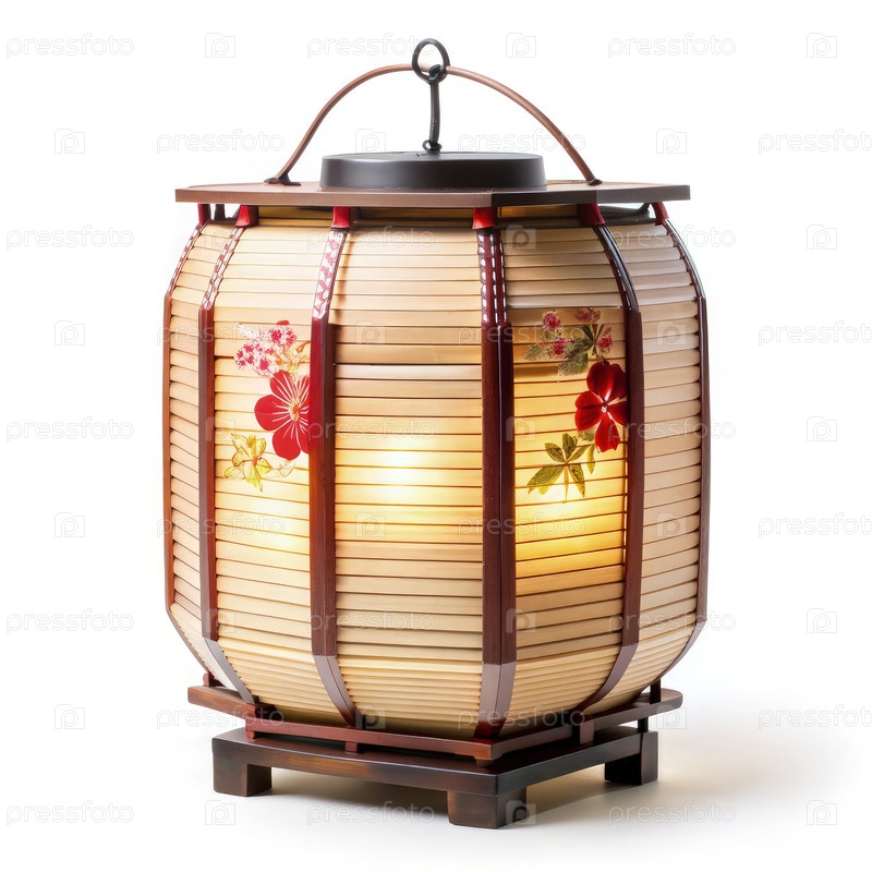 Элегантный японский фонарь с цветочным дизайном на белом фоне