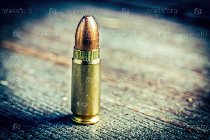 Близкий взгляд на пулю, опирающуюся на деревянную поверхность, демонстрируя металлическую оболочку и заостренный наконечник, подчеркивая ее детальное мастерство и дизайн
