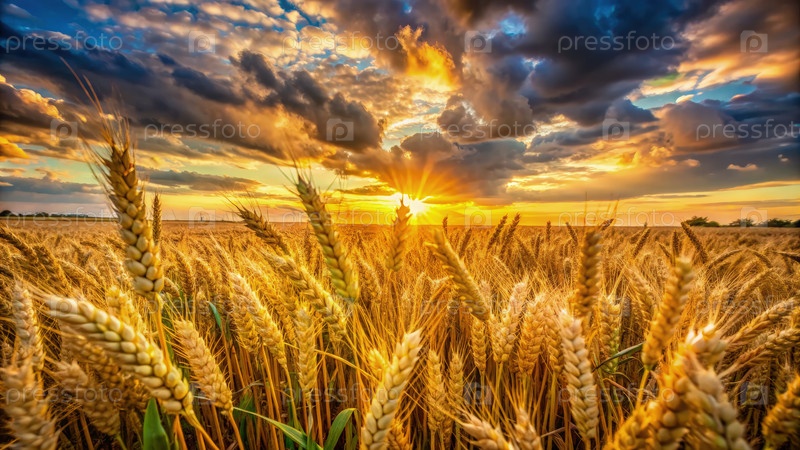 Золотые ржаные поля греются в теплом свете драматического захода солнца