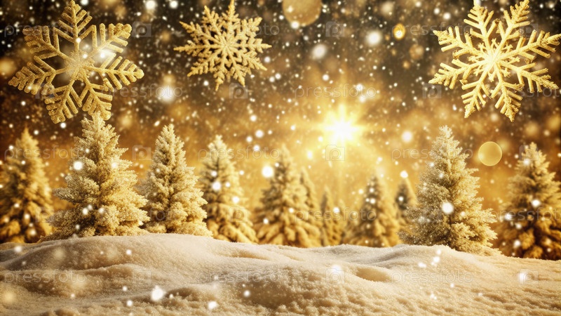 Волшебная зимняя страна чудес с обильными снегопадами и блестящими снежинками на закате