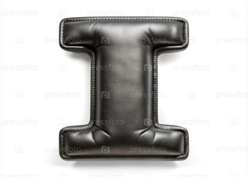 Надувная кожаная буква "I" изображена в минималистическом стиле на белой поверхности, подчеркивая ее мягкую, упакованную текстуру и уникальную форму