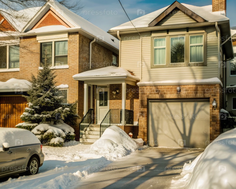 Человек убирает снег с подъездной дороги в Монреале, Канада во время зимнего сезона