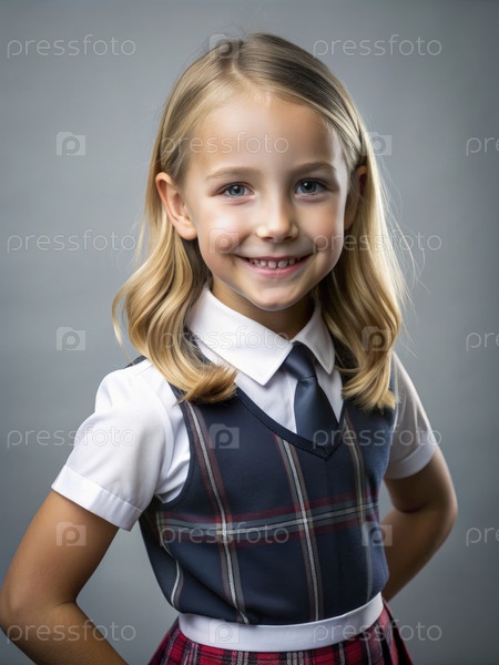 Вдумчивый портрет школьницы в колодной форме с нежной улыбкой