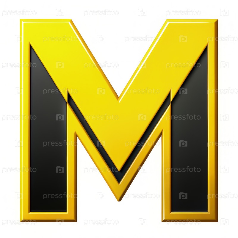 Жесткая желтая буква M Логотип с черными акцентами на чистом фоне