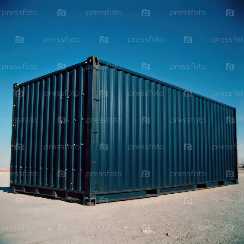 Большой черный грузовой контейнер, расположенный на глубоком черном фоне, подчеркивая его уникальную структуру и дизайн, подходящий для транспортировки и хранения