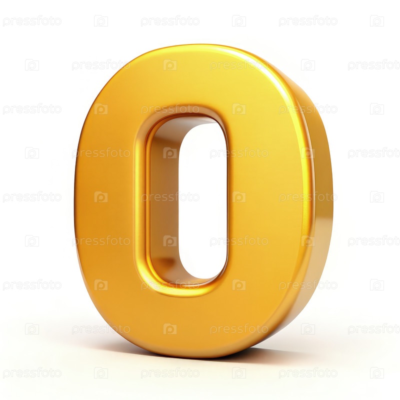 Золотое число ноль на белом фоне в минималистическом стиле