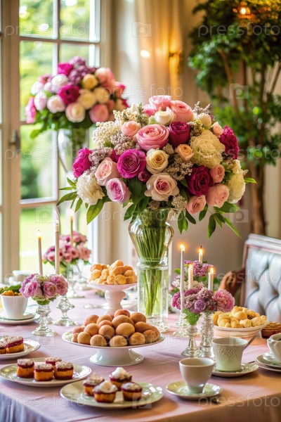 Элегантный сладкий стол с цветочными аранжировками для гостей весеннего собрания