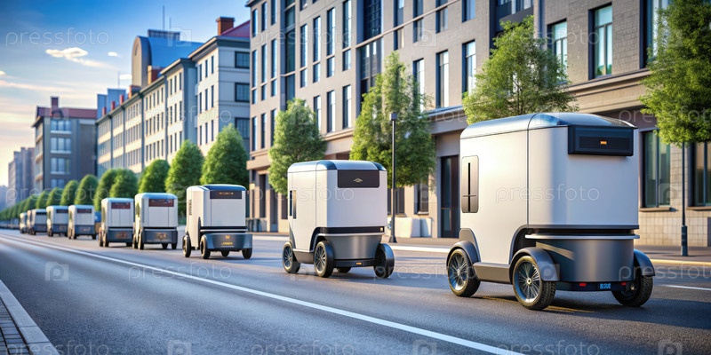 Современная городская улица, выложенная изысканными транспортными средствами доставки в дневном солнечном свете