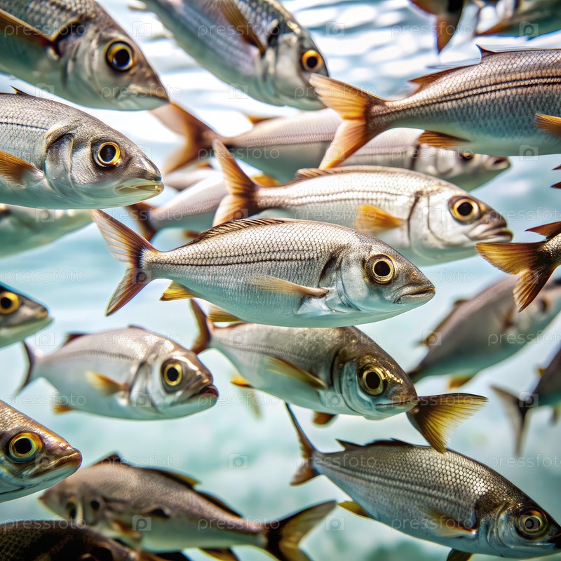 Скопь серебряных рыбок, грациозно плавающих в чистых океанических водах