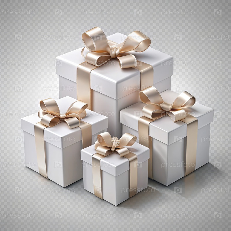 Белые коробки для подарков с лентами, наложенными элегантно для празднования
