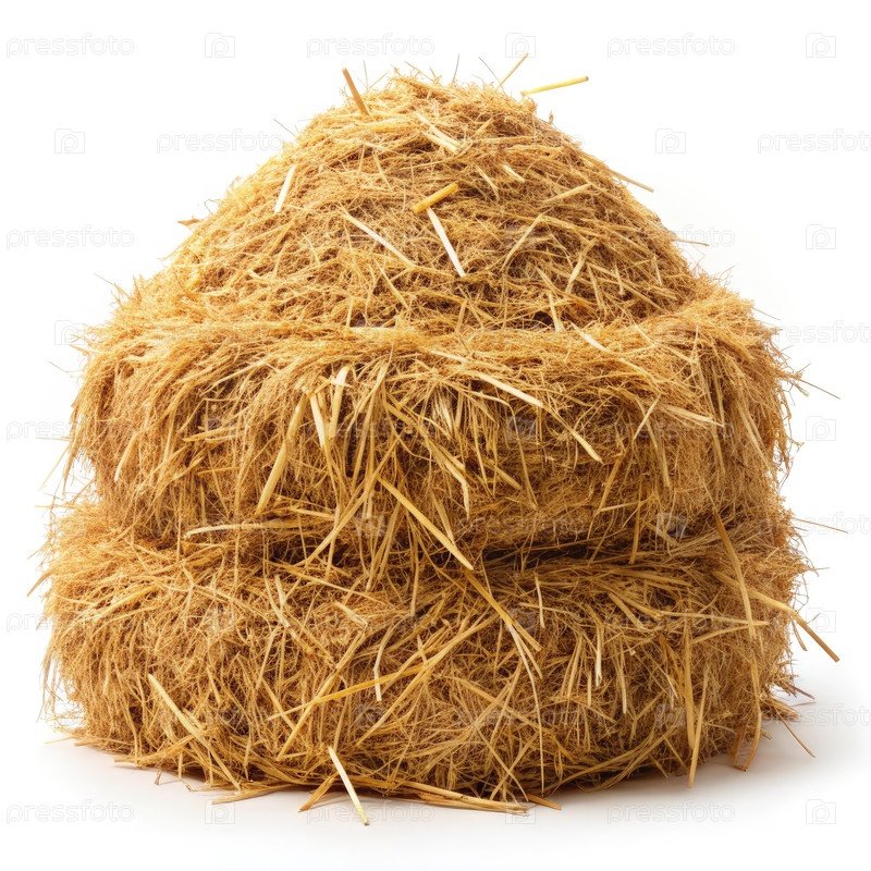 Сено на белом фоне демонстрирует простое сельскохозяйственное хранение