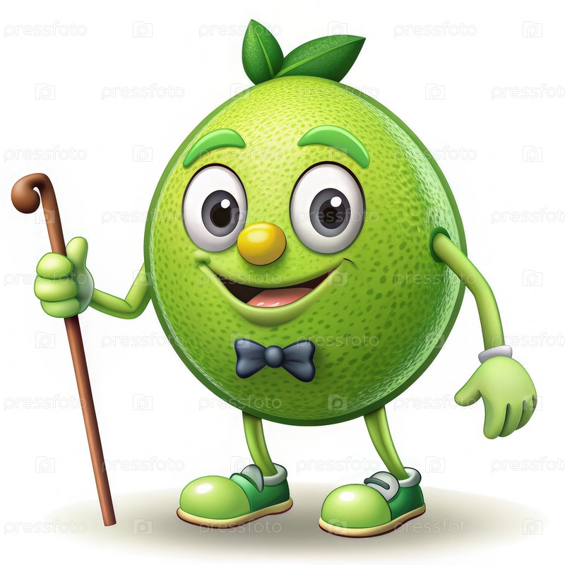 Мистер Лайм счастливо гуляет с тростью в веселом мультфильме