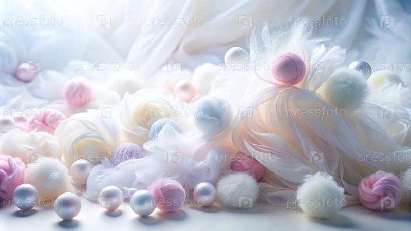 Мягкие пастельные текстуры и деликатные украшения на белом фонеГенеративное искусство ИИ