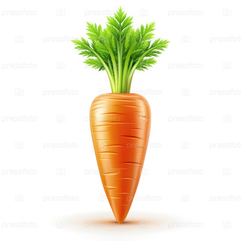 Свежие морковные овощи с зелеными листьями, отображаемые на белом фоне