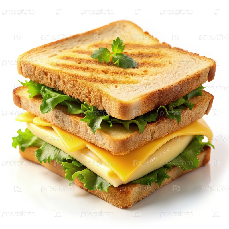 Сэндвич с тостом, сыром и салатами на белом фоне