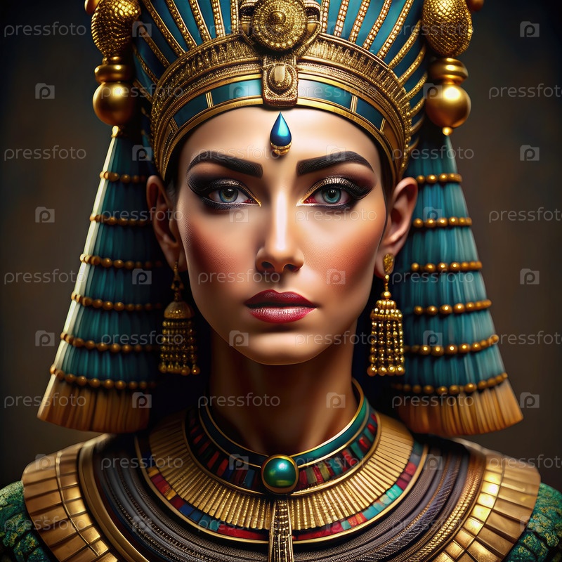 Королевское изображение Клеопатры в величественной древнеегипетской одежде и ювелирных украшениях