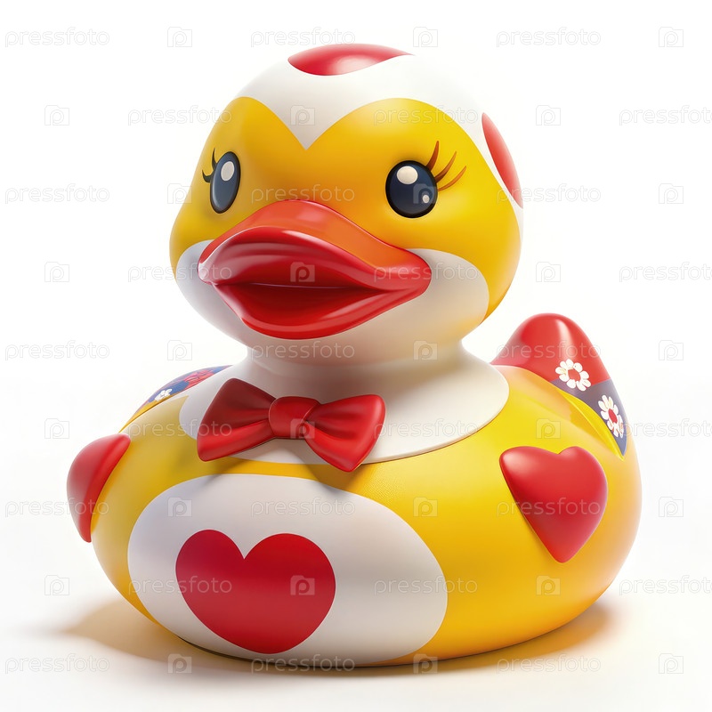 Красочная резиновая утка с сердцами и галстуком, празднующая японскую культуру