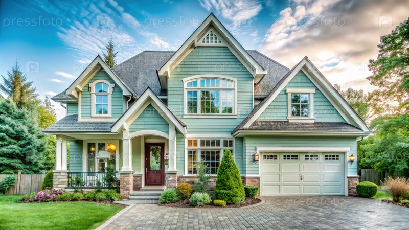 Красивый экстериор теплицы с ландшафтным оформлением в пригородном районе