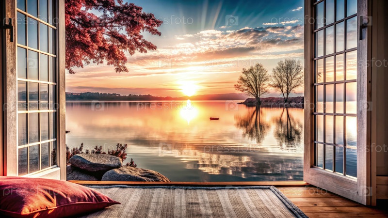 Мирная утренняя медитация у безмятежного озера при восходе солнца