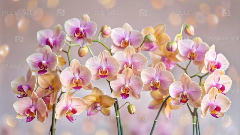 Элегантное расположение пастельных орхидей в мягком освещении теплого дня