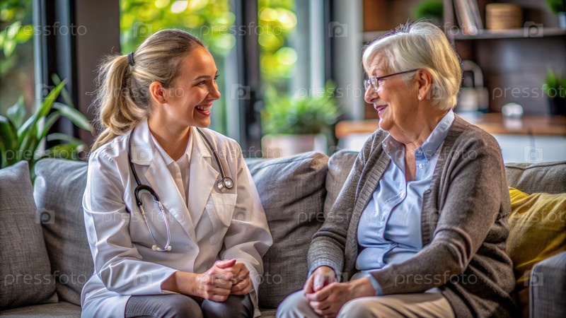 Консультация врача с пожилым пациентом в теплой и приятной обстановке