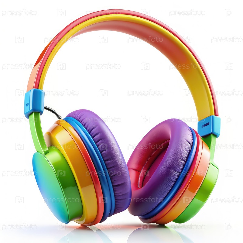 Яркие красочные наушники на хрустящем белом фоне идеально подходят для любителей музыки всех возрастов