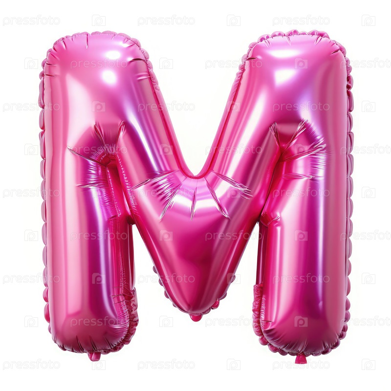 Розовый воздушный шар в форме буквы M на белом фоне