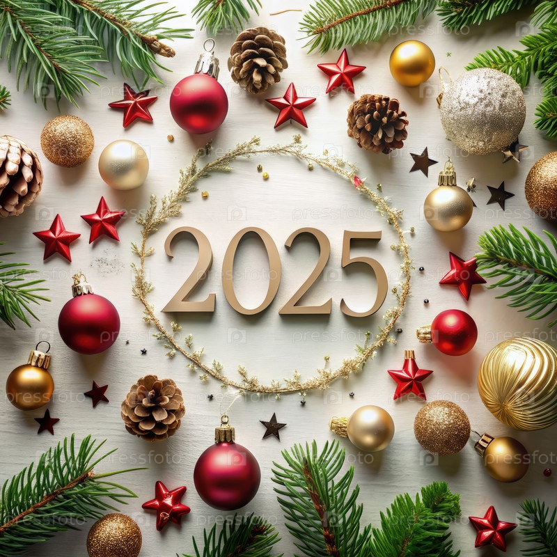 Праздничное устройство украшений и сосны для празднования Нового 2025 года