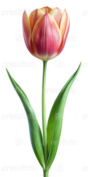 Реалистичный тюльпан с яркими цветами, грациозно стоящий на белом фоне