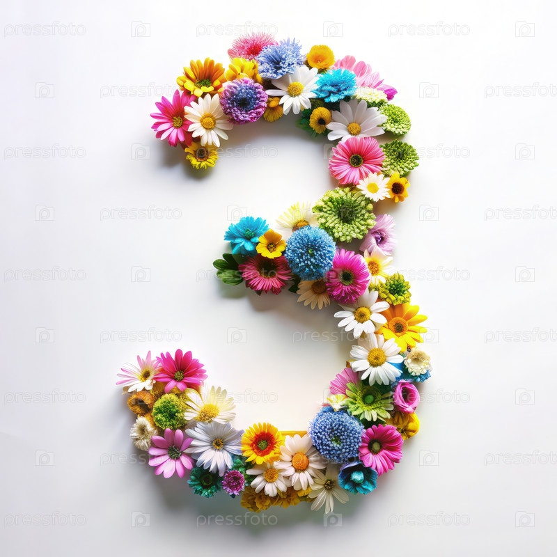 Красочная цветовая аранжировка, образующая число три на белом фоне
