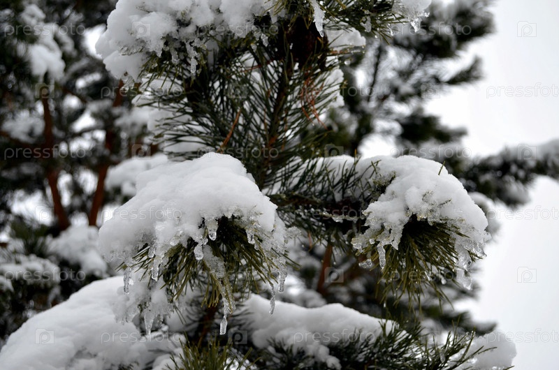 Ветки сосны, засыпанные снегом