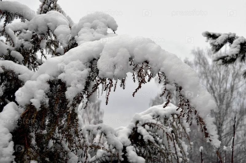 Ветки можжевельника, засыпанные снегом