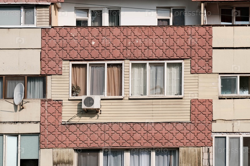Фасад дома в стиле советского модернизма в Алмате